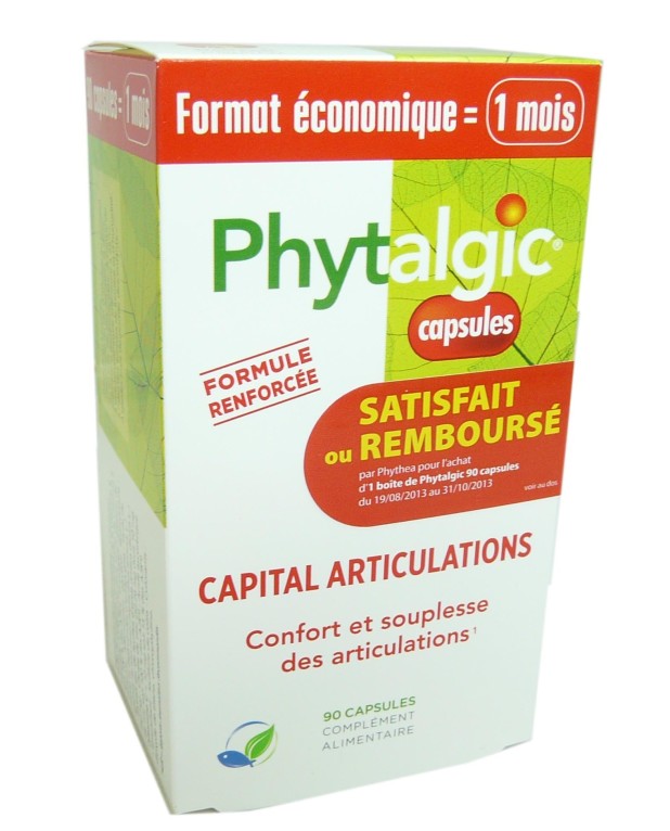 PHYTALGIC est un complément alimentaire en capsules, à base d'huile de poisson sauvage contenant des oméga 3, du zinc qui aide au maintien d'une ossature normale, de la vitamine C qui participe à la formation normale de collagène pour le fonctionnement normal des os et du cartilage ainsi que de l’Ortie qui favorise le maintien d'articulations souples. Enfin la vitamine E complète cette formule et contribue à protéger les cellules contre le stress oxydatif.