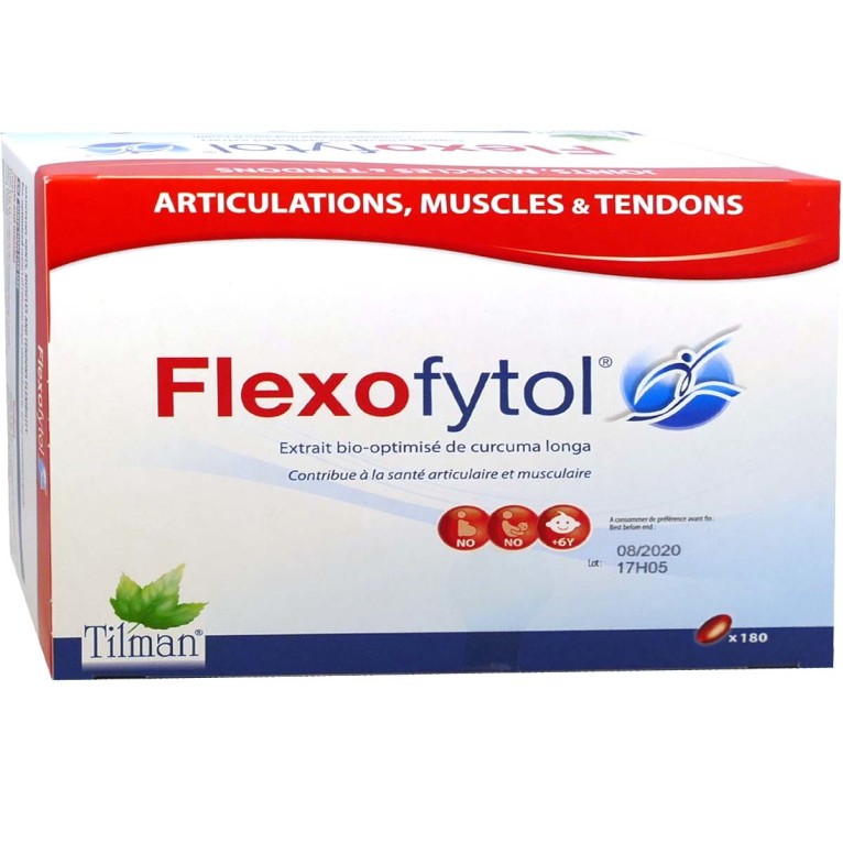 FLEXOFYTOL des laboratoires TILMAN est un complément alimentaire composé de curcumine, extraite du curcuma qui contribue à soulager les douleurs musculaires et articulaires. FLEXOFYTOL est conditionné en capsules.