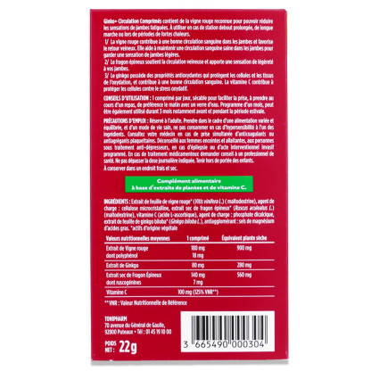 GINKO+ CIRCULATION 30 COMPRIMES SECABLES est disponible en vente en ligne à prix discount sur Pharmashopdiscount.