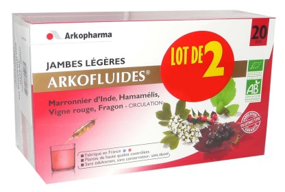 NSFP ARKOPHARMA ARKOFLUIDE JAMBES LEGERES LOT DE 2x20 AMPOULES