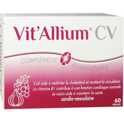 YALACTA est un laboratoire qui conçoit des compléments alimentaires naturels et produits à base de ferments lactiques pour préserver le bien-être de l’organisme au quotidien. Vit’allium CV est un complément alimentaire sous forme de gélules à avaler, composé d’extrait d’ail ambré (Allium sativum L), riche en acides aminés, minéraux, vitamines, composés soufrés. En apportant ces nutriments associés à un extrait de peau de raisin (titré en trans-resvératrol) et vitamine B1, il va participer et préserver la bonne fonction du cœur, maintenir une bonne circulation sanguine et équilibrer le taux de lipides dans le sang. YALACTA a spécialement formulé les gélules afin que l’odeur de l’ail soit diminué sans réduire l’efficacité des composants naturels de l’ail, par un procédé de maturation innovant. Convient aux végétariens. Sans gluten