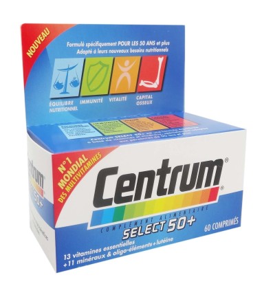 Centrum Select 50+ de CENTRUM est un complément alimentaire destiné aux personnes de plus de 50 ans pour apporter les nutriments nécessaire en complément de l’alimentation pour le bien-être de tous les jours.