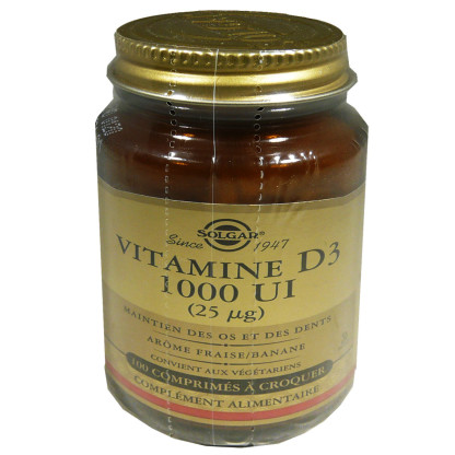 SOLGAR VITAMINE D3 1000UI 100 COMPRIMES A CROQUER