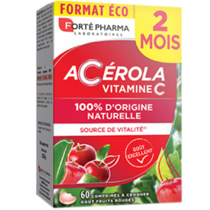ACEROLA VITAMINE C de FORTÉ PHARMA, le complément alimentaire en comprimés à base d’Acérola naturellement riche en Vitamine C qui contribue à réduire la fatigue à prix discount sur le site de votre parapharmacie en ligne discount