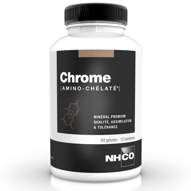 CHROME laboratoire NHCO Nutrition, un oligo-élément essentiel du corps humain qui contribue au maintien du bon métabolisme des macronutriments, notamment celui des glucides et des lipides dans votre parapharmacie en ligne, dans un complément alimentaire en gélules