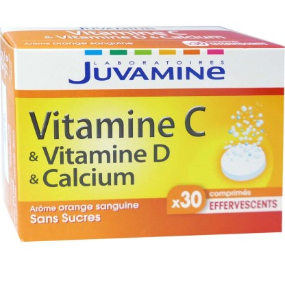 Vitamine C & Vitamine D & Calcium de JUVAMINE discount, un complément alimentaire naturel dans votre parapharmacie en ligne à prix discount, conçu pour participer au bien-être général de l’organisme.