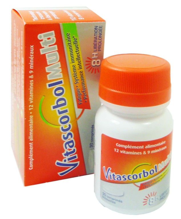 Le complément alimentaire VITASCORBOL MULTI sous forme de comprimés, bénéficie de la technologie tri-couche. Cette technologie permet de diffuser progressivement dans l’organisme les 12 vitamines et 9 minéraux pour diminuer la fatigue, améliorer les performances intellectuelles, et renforcer les défenses naturelles de l’organisme. En se libérant progressivement, les actifs agissent à long terme pour retrouver du tonus pour longtemps.