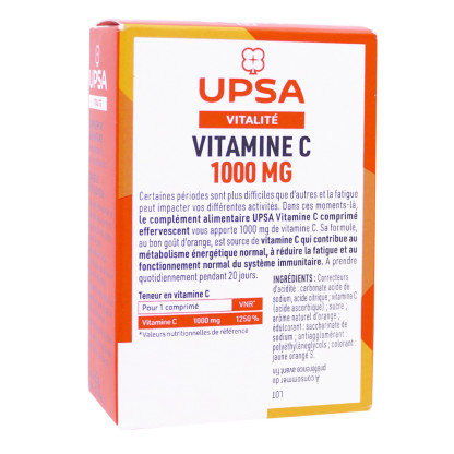 UPSA VITALITÉ VITAMINE C 1000MG 20 COMPRIMÉS EFFERVESCENTS