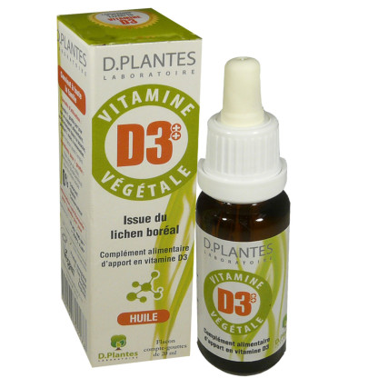 Le laboratoire D. Plantes conçoit des compléments alimentaires, vitamines D3, huiles essentielles et végétales et des soins dermo-cosmétiques à base uniquement d’extraits de plantes bio d’origine naturelle. Vitamine D3++ Végétale Huile est un complément alimentaire qui apporte de la vitamine D3 appelée aussi la vitamine du soleil. D’origine naturelle et sous forme d’huile, la vitamine D3 contenue dans ce complément alimentaire est issue du lichen boréal. La vitamine D contribue au maintien de l’état normal du système immunitaire, des os, et de la dentition notamment. Sans colorant, sans additifs, sans gluten, sans conservateur, sans agent de texture.