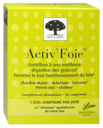 Activ’Foie du laboratoire NEW NORDIC, un complément alimentaire composé de plantes, en comprimés, dans votre parapharmacie en ligne à prix discount.