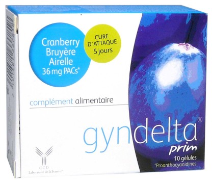 GYNDELTA Prim des laboratoire CCD, le complément alimentaire qui aide à prévenir et soulager les infections urinaires et lutter contre les récidives.