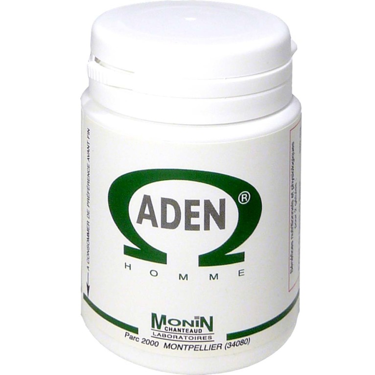 ADEN Homme du laboratoire MONIN CHATEAUD, est un complément alimentaire à base d’ortie et d’oignon, qui contribuent à stimuler la fonction d’élimination rénale, et de baies de Sabal, qui participent à maintenir la fonction urinaire normale chez les hommes.