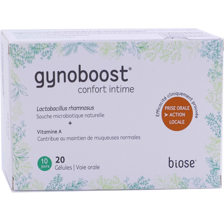 GYNOBOOST des laboratoires Besins est un complément alimentaire spécialement formulé pour rétablir l’équilibre de la flore intime et réduire les inconforts tels que des mauvaises odeurs, pertes importantes, sensation de brûlure, irritations, douleurs, gênes. Sa formule est composée d’une association de vitamine A et d’une souche microbiotique naturelle (lactobacillus rhamnosus breveté Lcr35®). La souche microbiotique naturelle (lactobacillus rhamnosus breveté Lcr35®) présente naturellement dans le vagin a été sélectionnée pour sa propriété à restaurer efficacement l'équilibre de la flore vaginale, tandis que la vitamine A va assurer le maintien des muqueuses normales. La gélule d’origine végétale permet aux actifs d’agir efficacement en étant protégés de l’acidité gastrique. La consommation quotidienne de GYNOBOOST (1 gélule par jour) contribue à renforcer l’équilibre de la flore vaginale. Sans gluten