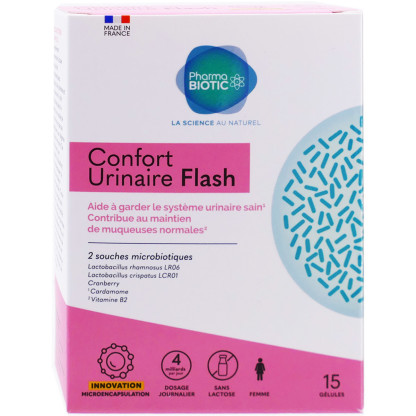 PHARMA BIOTIC CONFORT URINAIRE FLASH 15 GELULES est disponible en vente en ligne à prix discount.