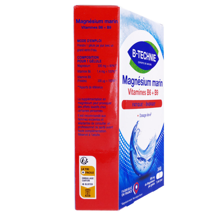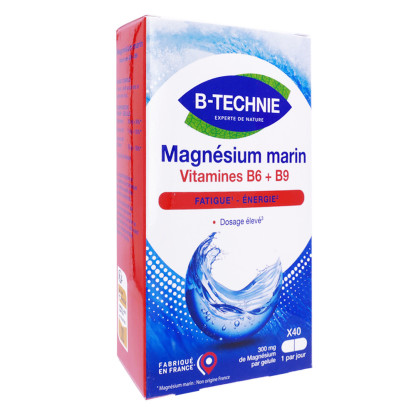 B-TECHNIE MAGNÉSIUM MARIN VITAMINE B6 + B9 40 GÉLULES est disponible en vente en ligne sur le site de votre parapharmacie à prix discount.