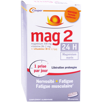 MAG 2 24H discount de COOPER, le complément alimentaire à base de Magnésium marin, vitamine B6 & B12 dans votre parapharmacie en ligne à prix discount.