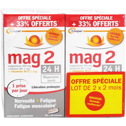MAG 2 24H discount de COOPER, le complément alimentaire en comprimés à base de Magnésium, et vitamines B, dans votre parapharmacie en ligne à prix discount