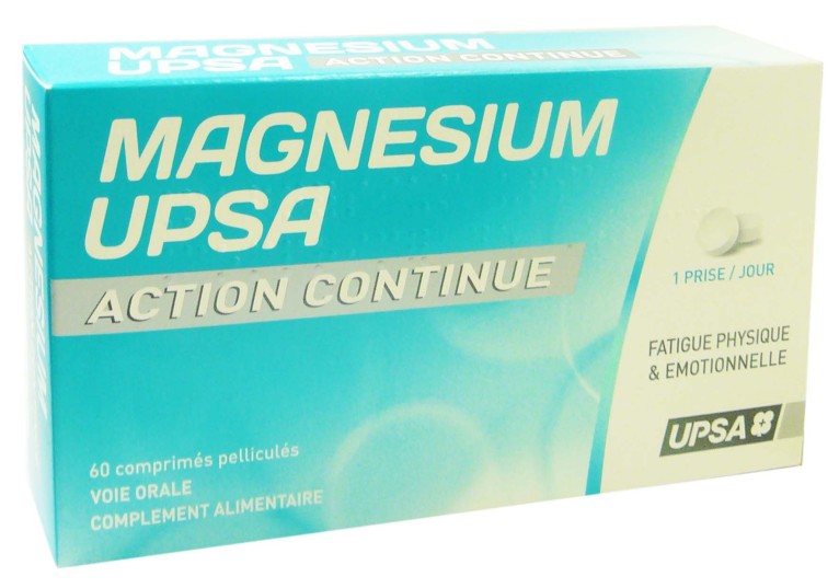 UPSA MAGNESIUM Action Continue, le complément alimentaire qui diminue la fatigue passagère physique ou morale.