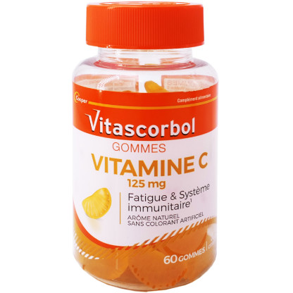 VITASCORBOL VITAMINE C 125MG 60 GOMMES GOUT CITRON en vente en ligne, sur le site de votre parapharmacie à prix discount, est un complément alimentaire idéal pour renforcer votre système immunitaire et booster votre énergie au quotidien.
