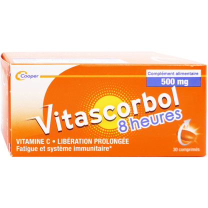 VITASCORBOL 8 Heures discount des laboratoires COOPER, le complément alimentaire en comprimés à avaler à libération prolognée, à base de Vitamine C avec édulcorants, à prix discount dans votre parapharmacie en ligne. Pour Adultes