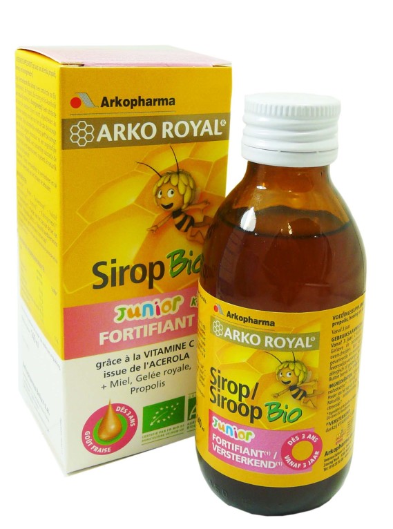 Sirop bio Junior Arkoroyal d’ARKOPHARMA, le complément alimentaire sous forme de sirop adapté aux enfants (à partir de 3 ans) qui redonne du tonus lors de fatigue passagère, de périodes hivernales, ou à l’approche d’épreuves (intellectuelles ou physiques), tout en renforçant les défenses naturelles de l’organisme.