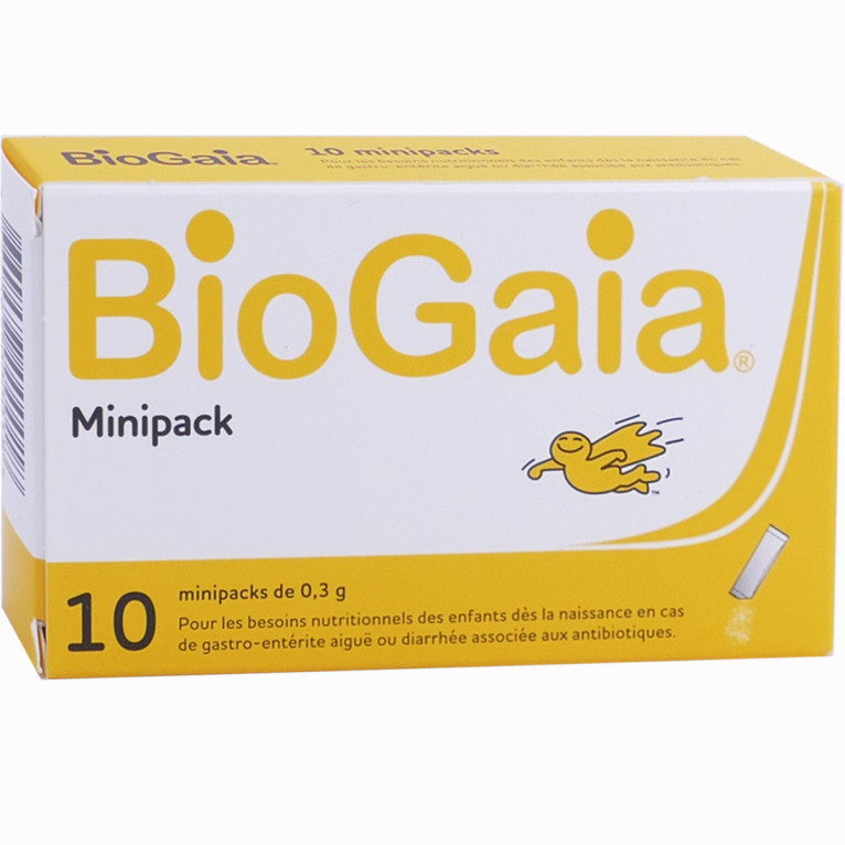 1 à 2 Biogaia Gastro-entérite / diarrhée associée aux antibiotiques minipack(s)/jour, suivant les recommandations de votre médecin. Ne pas dépasser la dose recommandée. BioGaia® Minipack peut être mélangé à du lait maternel, du lait infantile, de l’eau, une solution de réhydratation orale ou saupoudrée sur de la nourriture ou une boisson. Ne pas ajouter sur des aliments chauds ou boissons chaudes car cela pourrait endommager les bactéries vivante