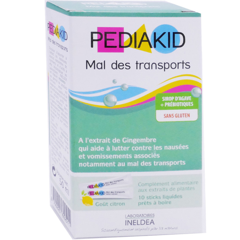 PEDIAKID Mal des transports en Sticks liquides de INELDEA, à prix discount, inspiré par la nature, un complément alimentaire aux extraits de plantes pour les enfants et les pré-adolescents à l'extrait de gingembre qui participe à lutter contre les nausées et les vomissements dans votre parapharmacie discount en ligne.