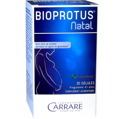 Le laboratoire CARRARE a conçu des compléments alimentaires pour le bien être de tous composés de produits naturels. Bioprotus Natal de CARRARE est un complément alimentaire spécialement formulé pour contribuer aux besoins spécifiques de la femme enceinte et de son bébé pendant toute la phase de la grossesse. Sa formule est composée de vitamine B9 ou folates (Quatrefolic) essentiel à la division des cellules et à la croissance des tissus maternels, des fibres douces (gomme d’Acacia bio) et de 5 milliards de ferments lactiques pour un développement harmonieux du fœtus et le maintien de l’équilibre de l’organisme chez la maman afin de renforcer ses défenses immunitaires. Garanti sans conservateurs, sans OGM, sans gluten