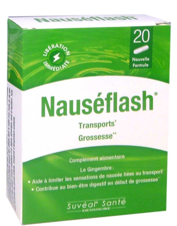 Suvéal Santé Nauséflash est un complément alimentaire sous forme de gélule à libération immédiate, à base d’extrait de gingembre. Suvéal Santé Nauséflash contient 50mg d’extrait sec de rhizome de gingembre naturel qui correspond à 250mg de poudre de gingembre. Ainsi le gingembre présent dans cette formule aide à limiter les sensations de nausées liées aux voyages.