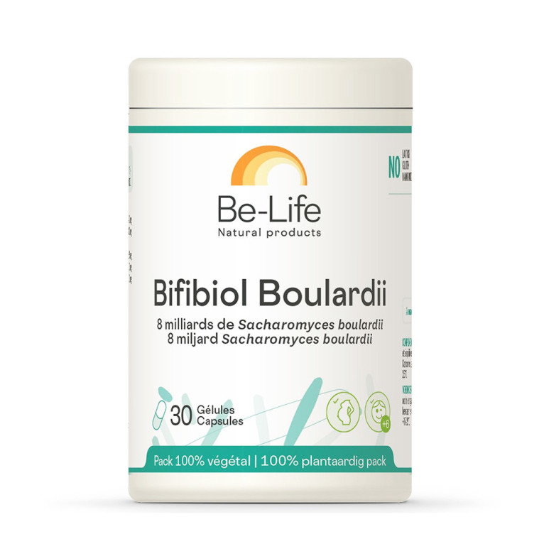 Ce complément alimentaire de la gamme BE-LIFE est formulé avec de la souche de levure de boulardii, qui est une levure non pathogène. Les ferments lactiques dosés à 8 milliards par gélule contribuent à l'équilibre de la flore intestinale.