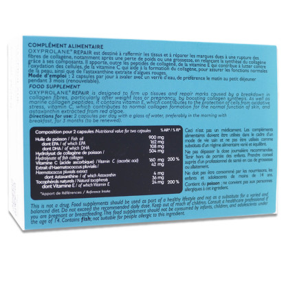 LABORATOIRE BIO RECHERCHE OXYPROLANE REPAIR RÉGÉNÉRATION DE LA PEAU 60 CAPSULES est disponible en vente en ligne à prix discount sur Pharmashopdiscount.