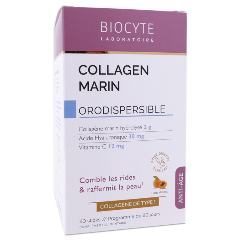 BIOCYTE ANTI AGE COLLAGEN MARIN ORODISPERSIBLE 20 STICKS est disponible en vente en ligne à prix discount sur Pharmashopdiscount.