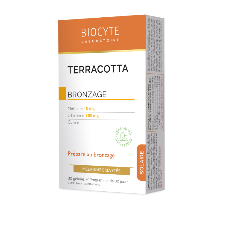 Terracotta bronzage discount de BIOCYTE, le complément alimentaire à base de Cuivre pour contribuer à la pigmentation normale de la peau et protéger les cellules contre le stress oxydatif, dans votre parapharmacie en ligne à prix discount.
