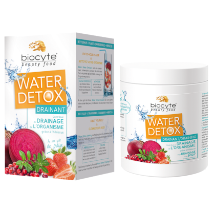 WATER DETOX DRAINANT de BIOCYTE Beauty food, le complément alimentaire sous forme de poudre à diluer à base de Choline qui contribue au maintien d'une fonction hépatique normale et d'extrait d'Hibiscus qui aide au drainage de l'organisme, dans votre parapharmacie en ligne à prix discount.