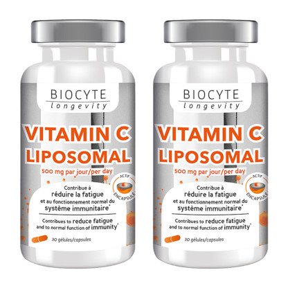 Vitamine C Liposomal LONGEVITY 30 gélules de BIOCYTE, un complément alimentaire à base de vitamine C qui va contribuer à réduire la fatigue et participer au fonctionnement normal des défenses immunitaires. Disponible dans votre parapharmacie en ligne à prix discount.