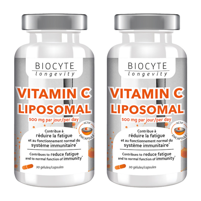 La gamme LONGEVITY de BIOCYTE à base d'ingrédients naturels et de technologies de micro-encapsulation répondent rapidement aux besoins du quotidien. Vitamine C Liposomal LONGEVITY est un complément alimentaire sous forme de gélules, composées de vitamine C qui va permettre de réduire la fatigue et de participer au fonctionnement normal du système immunitaire. Les actifs fabriqués par liposomes (micro-sphères) permettent un meilleur passage en évitant l’environnement gastrique pour être absorbé directement dans les cellules de l’organisme.