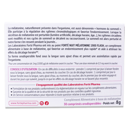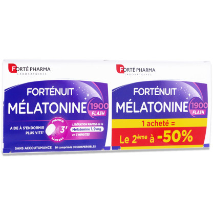 FORTEPHARMA FORTENUIT MELATONINE 1900 FLASH 2X30 COMPRIMES est disponible en vente en ligne à prix discount sur Pharmashopdiscount.