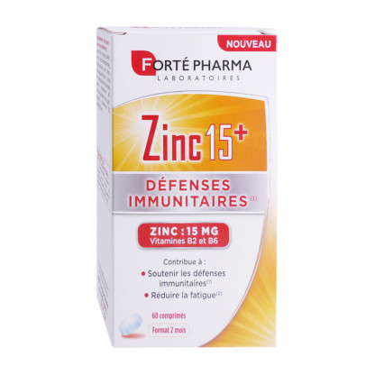 ZINC 15+ de FORTÉ PHARMA à prix discount, la solution en complément alimentaire conditionné en comprimés à base de zinc et vitamines, dans votre parapharmacie en ligne discount.