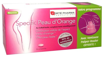 SPECIFIC Peau d’orange de FORTÉ PHARMA, la solution minceur en comprimés pour diminuer l’effet peau d’orange et lisser la peau, ventouse palper-rouler offerte.