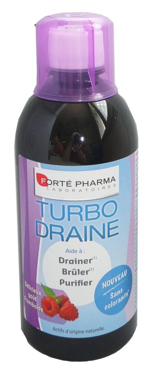 Depuis 1999, les Laboratoires FORTÉ PHARMA développent des compléments alimentaires efficaces et innovants, aux formules issues de la recherche en nutrition cellulaire, pour contribuer à renforcer les ressources vitales des utilisateurs. L’univers minceur de FORTÉ PHARMA propose des produits conçus pour favoriser la perte de poids en complément d’une alimentation adaptée et d’une activité sportive. TURBODRAINE de FORTÉ PHARMA est un complément alimentaire conditionné sous forme de solution buvable à diluer, spécialement formulé pour favoriser la perte de poids en drainant l’organisme et en stimulant les fonctions d’élimination. La formule innovante de TURBODRAINE associe des extraits de reine des près et de thé vert qui favorisent l’élimination d’eau et stimulent la dégradation des lipides. Grâce à son goût agréable, TURBODRAINE se boit sans effort tout au long de la journée.