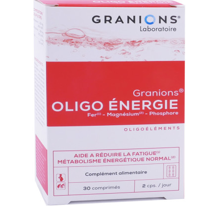 Les laboratoires des GRANIONS du groupe français EA Pharma développent des compléments alimentaires élaborés avec des actifs d'origine naturelle de qualité : plantes, oligoéléments, acides gras, vitamines et minéraux. Les différentes gammes GRANIONS proposent des compléments alimentaires à base d’actifs qui vont aider au fonctionnement de l’organisme. GRANIONS Oligo-Energie est un complément alimentaire qui associe des oligo-éléments. GRANIONS Oligo-Energie est composé de fer qui contribue à réduire la fatigue, ainsi que de magnésium et de phosphore qui favorisent un métabolisme énergétique normal.