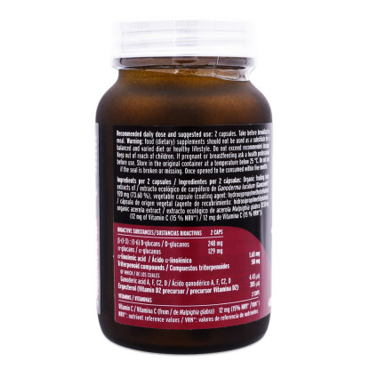 Le produit contient principalement du Reishi, un champignon qui contribue au maintien des défenses naturelles de l'organisme et participe au bon fonctionnement du système immunitaire grâce à la vitamine C issue de l'extrait d'acérola biologique.