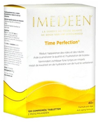 IMEDEEN Time Perfection est un complément alimentaire anti-âge, composé d’une formule unique qui associe complexe marin protéiné, lycopène de tomate, polyphénols de raisin et vitamine C. Jour après jour, IMEDEEN Time perfection réduit l'apparence des rides et des ridules, aide à améliorer la qualité de la peau. La peau est plus ferme, plus lisse, plus souple, le visage gagne visiblement en jeunesse.