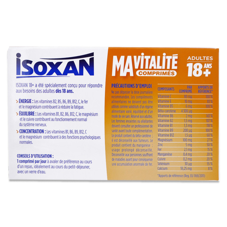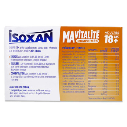 ISOXAN MA VITALITÉ ADULTES BOITE DE 30 COMPRIMÉS est disponible en vente en ligne à prix discount sur Pharmashopdiscount.