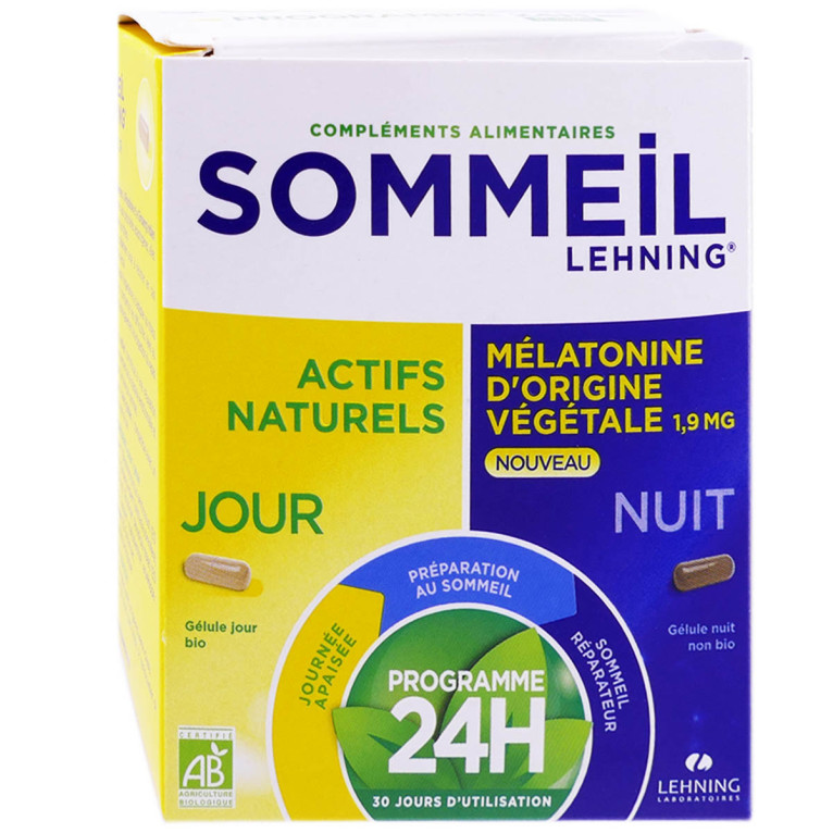SOMMEIL Jour/Nuit des Laboratoires LEHNING est un complément alimentaire conditionné sous forme de gélule Jour/Nuit.