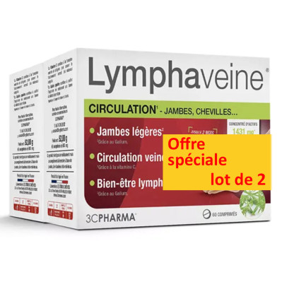 3C PHARMA LYMPHAVEINE LOT DE 2X60 COMPRIMES est en vente en ligne sur le site de votre parapharmacie à prix discount.