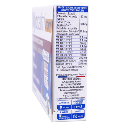 Laboratoires 3 CHÊNES à prix discount : Votre parapharmacie discount en ligne vous propose les produits de la marque Laboratoires 3 CHÊNES pas cher.Laboratoires 3 CHÊNES : un nouveau monde de bien-être !Les laboratoires 3 chênes développent depuis 1993 des compléments alimentaires et des produits cosmétiques aux formules innovantes et efficaces, élaborés à partir d’actifs naturels et biologiques facilement assimilables par l’organisme, dédiés à la beauté, le bien-être et la santé de la famille. Les laboratoires 3 chênes sont spécialisés dans l’extraction végétale et peuvent ainsi contrôler entièrement toutes les étapes de fabrication des produits, du choix des actifs qui composent leur formule jusqu’à leur distribution en pharmacie. ... Voir tous les produits LES 3 CHENES