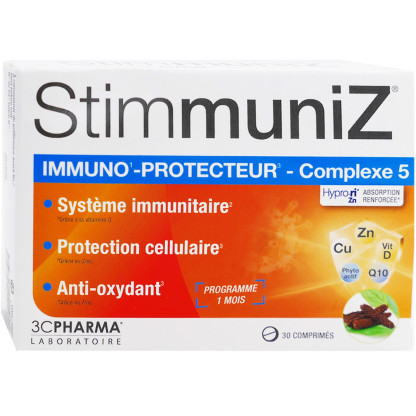 STIMMUNIZ discount des laboratoires 3C PHARMA, un complément alimentaire conditionné en comprimés, à base d’extrait de plante, vitamines et de zinc, dans votre parapharmacie en ligne à prix discount.