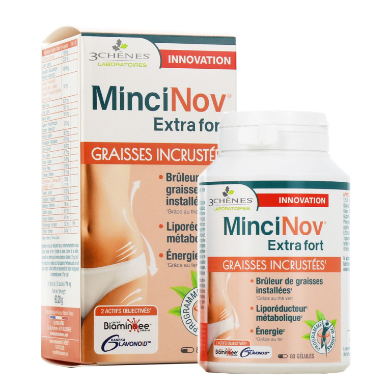Les 3 Chênes MINCINOV EXTRA FORT 80 GELULES en vente en ligne sur le site de votre parapharmacie à prix discount. Découvrez ce complément alimentaire à base d'acides aminés, de fer et d'extraits de plantes notamment le thé vert qui contribue à l'oxydation des graisses.