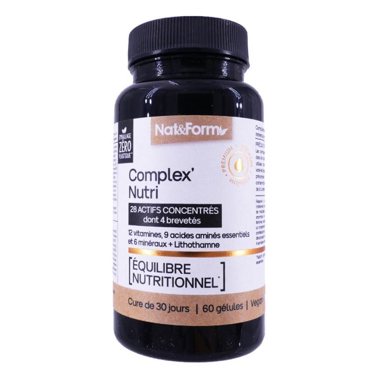 NAT&FORM COMPLEX NUTRI 60 GELULES est un complément alimentaire en vente en ligne sur le site de votre parapharmacie à prix discount.